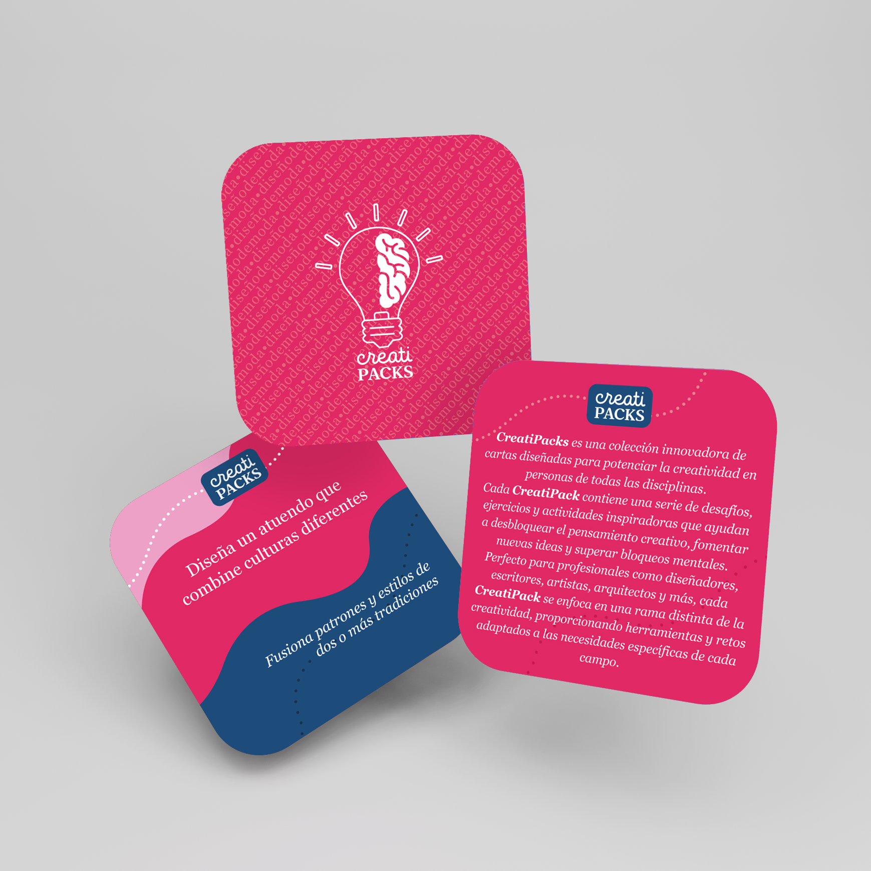 Este pack incluye 10 tarjetas cuidadosamente diseñadas para ayudarte a destrabar tu creatividad en cualquier momento y lugar. Cada CreatiPack es un disparador distinto, pensado para desafiar tu forma de pensar, salir del piloto automático y descubrir nuevas miradas sobre tu trabajo o tus proyectos personales.