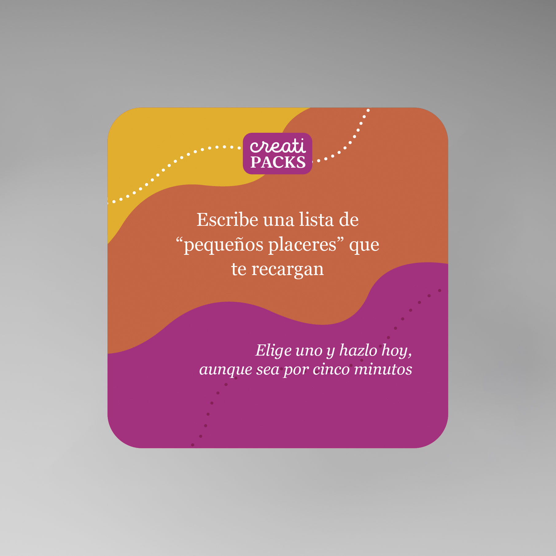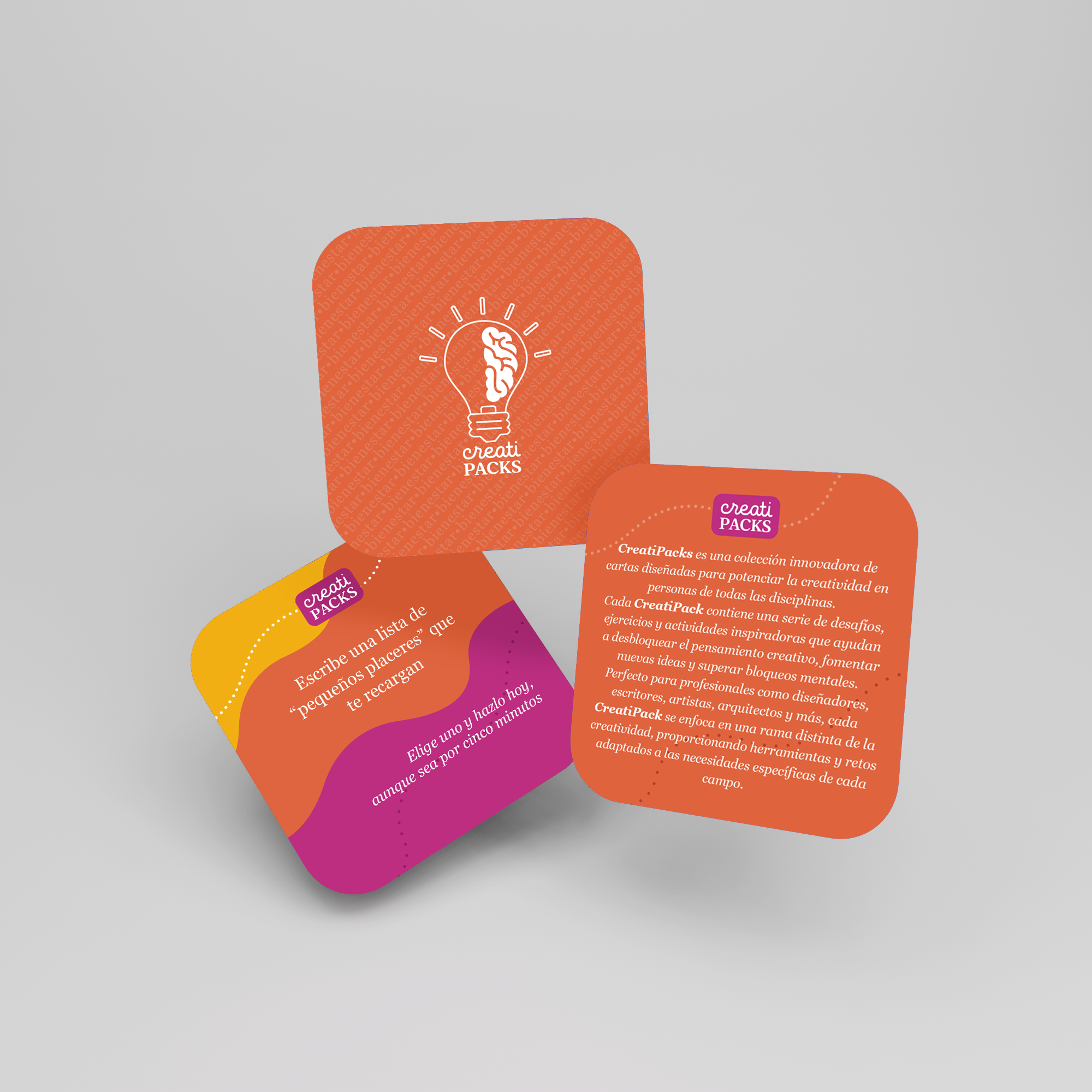 Este pack incluye 10 tarjetas cuidadosamente diseñadas para ayudarte a destrabar tu creatividad en cualquier momento y lugar. Cada CreatiPack es un disparador distinto, pensado para desafiar tu forma de pensar, salir del piloto automático y descubrir nuevas miradas sobre tu trabajo o tus proyectos personales.