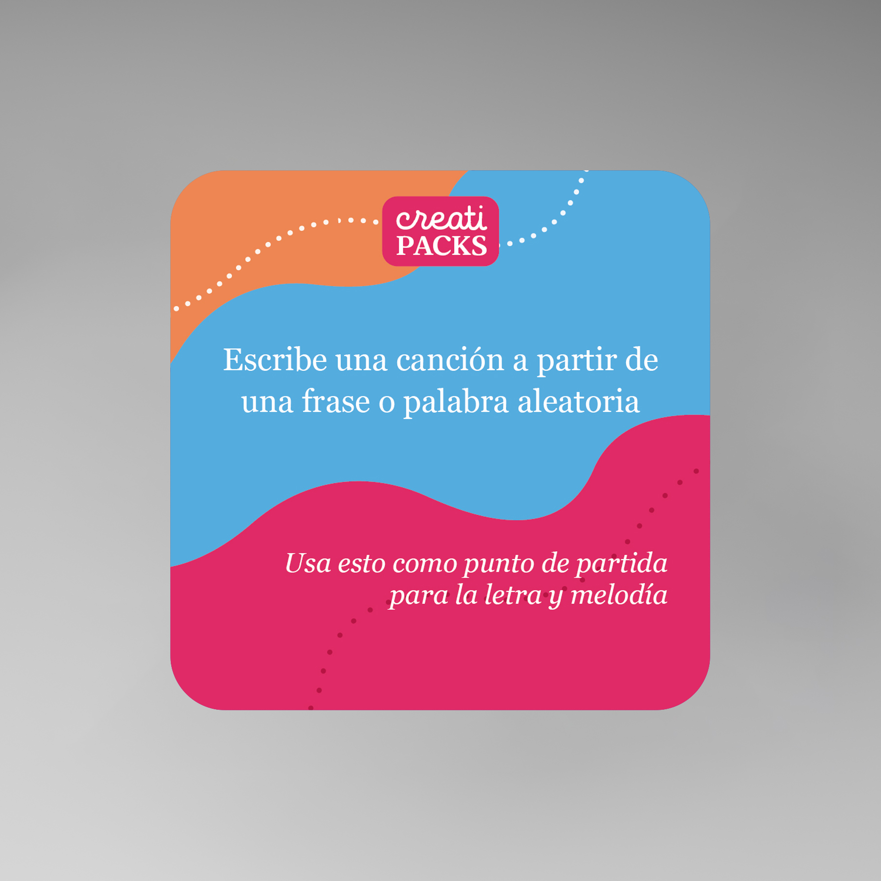 Un pack sensorial, lúdico y emocional. Pensado para músicos, compositores o creativos que usan el sonido como medio de expresión. Las cartas proponen desde juegos rítmicos y letras imaginadas, hasta cruces con otros lenguajes y estímulos visuales que se traducen en melodías.