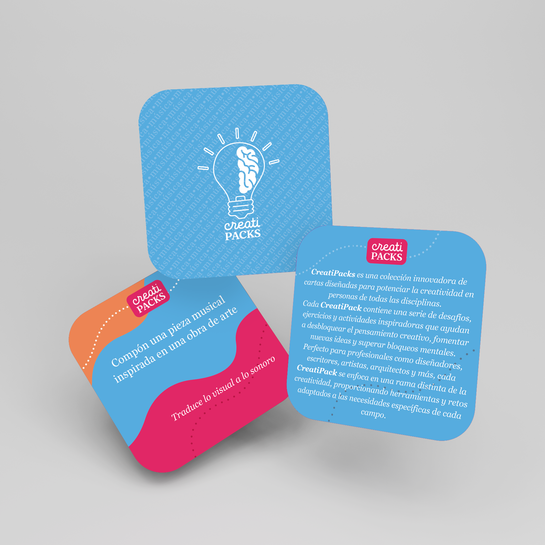 Este pack incluye 40 tarjetas cuidadosamente diseñadas para ayudarte a destrabar tu creatividad en cualquier momento y lugar. Cada CreatiPack es un disparador distinto, pensado para desafiar tu forma de pensar, salir del piloto automático y descubrir nuevas miradas sobre tu trabajo o tus proyectos personales.